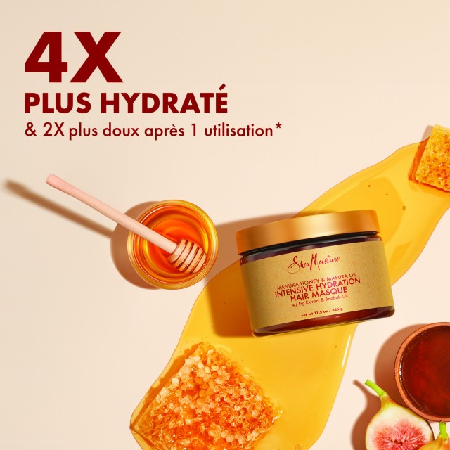 Miel de Manuka & Huile de Mafura. Masque Super Hydratant avec de l’Extrait de Figue et de l’Huile de Baobab. Soin et traitement profond.Pourcheveux très secs.
