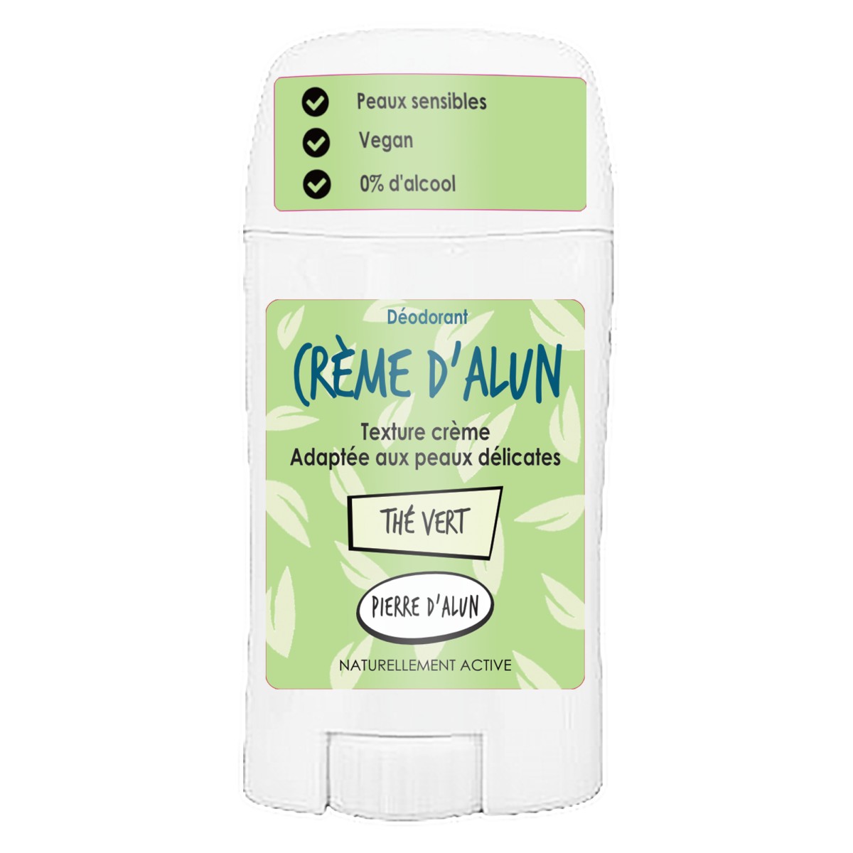 Déodorant Crème d'Alun Thé vert innovant à la pierre d’alun naturelle, élimine efficacement les mauvaises odeurs liées à la transpiration et procure un effet fraîcheur immédiat.
