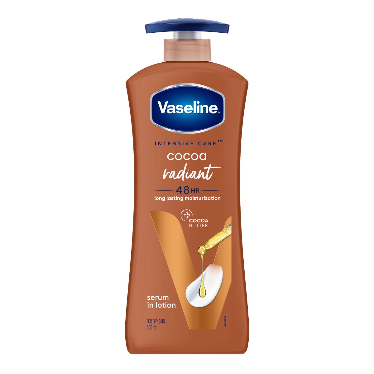Une lotion corporelle Vaseline® testée par des dermatologues pour les peaux ternes et sèches, créée avec du beurre de cacao pur pour un éclat radieux et durable. Sa formule non grasse est testée cliniquement pour procurer 90 % plus d’hydratation à la peau par rapport à une peau non traitée.