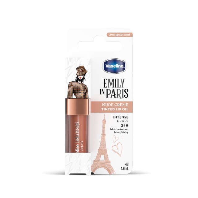 Ooh la la perfection parisienne! Un seul passage offre une hydratation de 24h, une brillance intense et une touche soyeuse. Jamais collante, toujours fabuleuse. L’huile à lèvres Emily in Paris x Vaseline hydrate intensément, offre une brillance miroir et un effet repulpant, tout en habillant les lèvres d’une couvrance intense mais naturellement élégante.