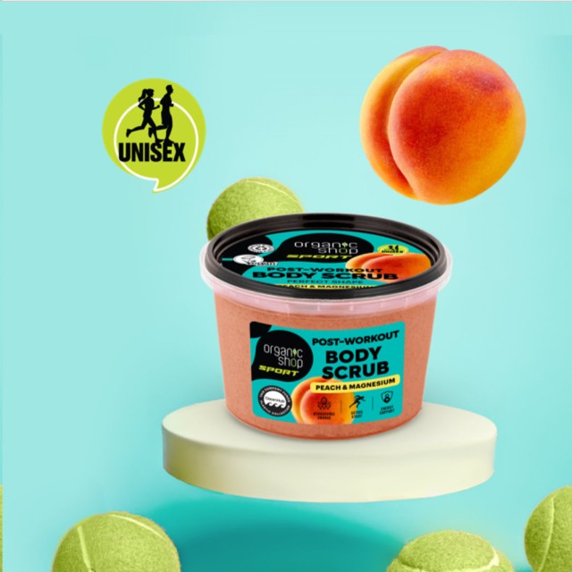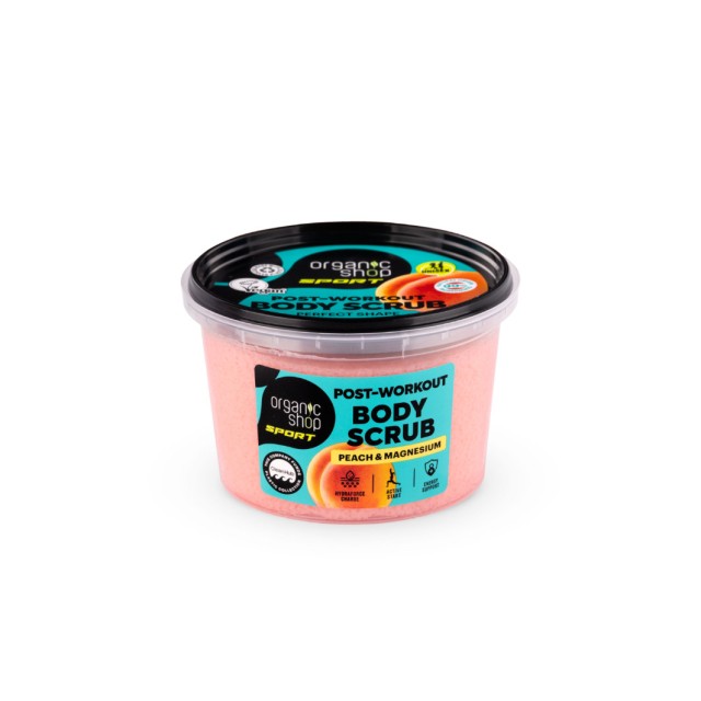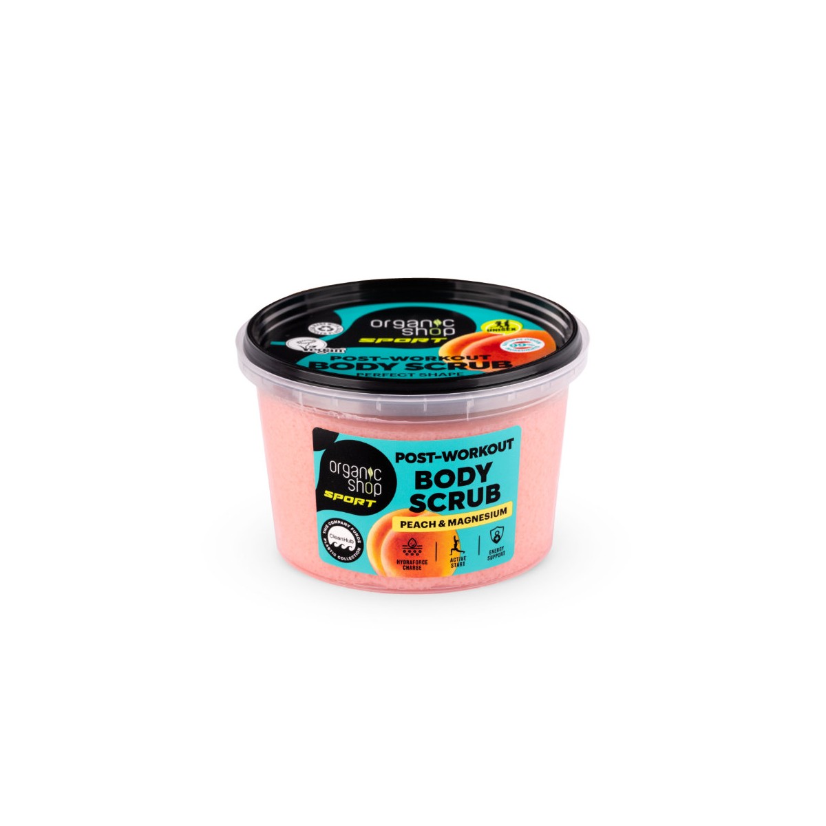 Après le sport, stimulez la vitalité de votre peau avec le gommage corps post-sport raffermissant Organic Shop.