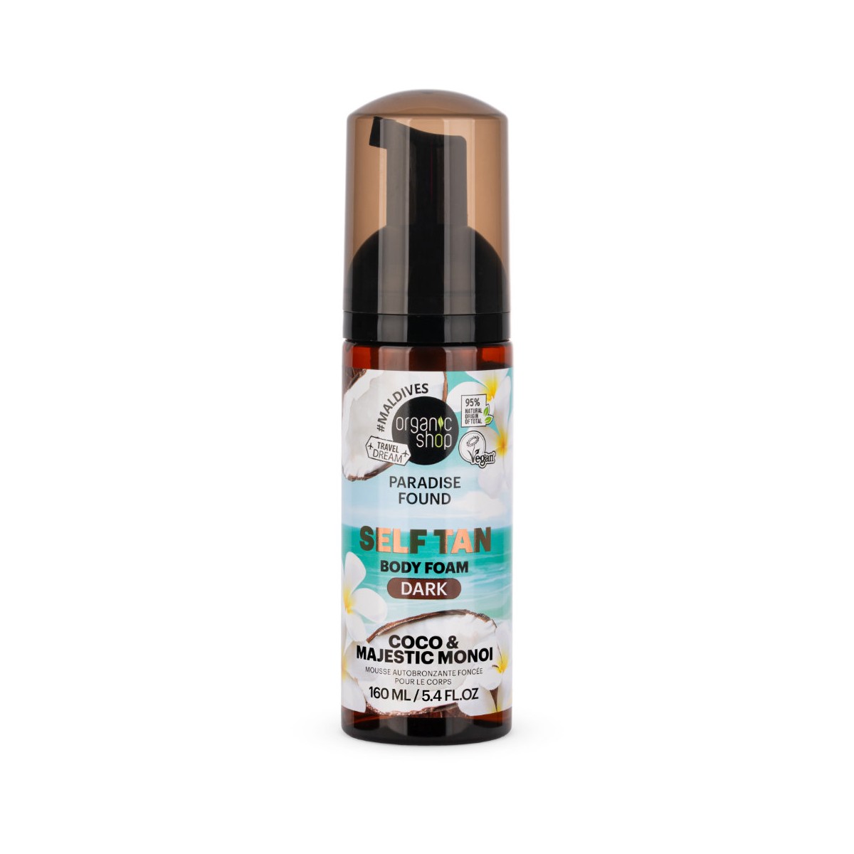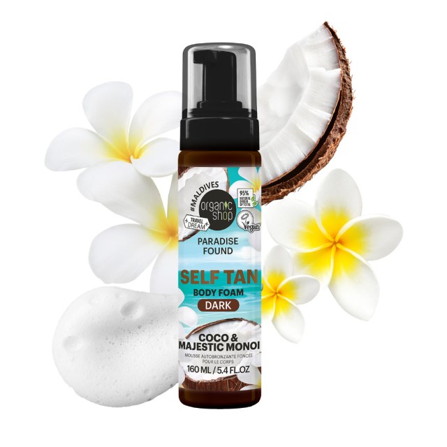 Obtenez un hâle foncé naturel et lumineux grâce à cette mousse autobronzante à la texture légère, enrichie en monoï et noix de coco.