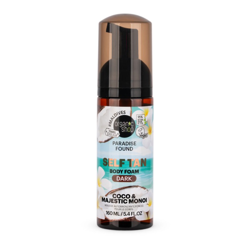 Obtenez un hâle foncé naturel et lumineux grâce à cette mousse autobronzante à la texture légère, enrichie en monoï et noix de coco.