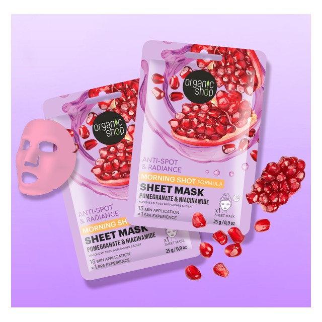 Le masque tissu anti-tâche & éclat est conçu pour donner un éclat radieux du matin au soir. La formule est enrichie en grenade qui revitalise la peau grâce à ses antioxydants et à sa vitamine C. La niacinamide intégrée à la formule améliore le teint et la texture de la peau. Un soin tonifiant qui redonne à la peau fatiguée son éclat naturel et un teint uniforme. Après son application la peau est lumineuse est les imperfections réduites.