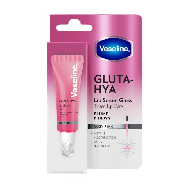 Dites bonjour à des lèvres instantanément repulpées grâce au sérum gloss repulpant Vaseline Gluta-Hya. Ce gloss sérum non collant est enrichi avec 4 types d'acide hyaluronique et en GlutaGlow, une technologie brevetée, pour prévenir l'apparition des ridules et hydrater en profondeur dès la première utilisation. Contient un SPF 15. Les tripeptides permettent de nourrir et repulper vos lèvres. Sa formule unique a été spécialement développée pour fondre sans effort sur vos lèvres, leur apporter une hydratation et un effet volume instantané. La teinte Rosy Pink est un rose frais et lumineux pour un effet lèvres naturelles.